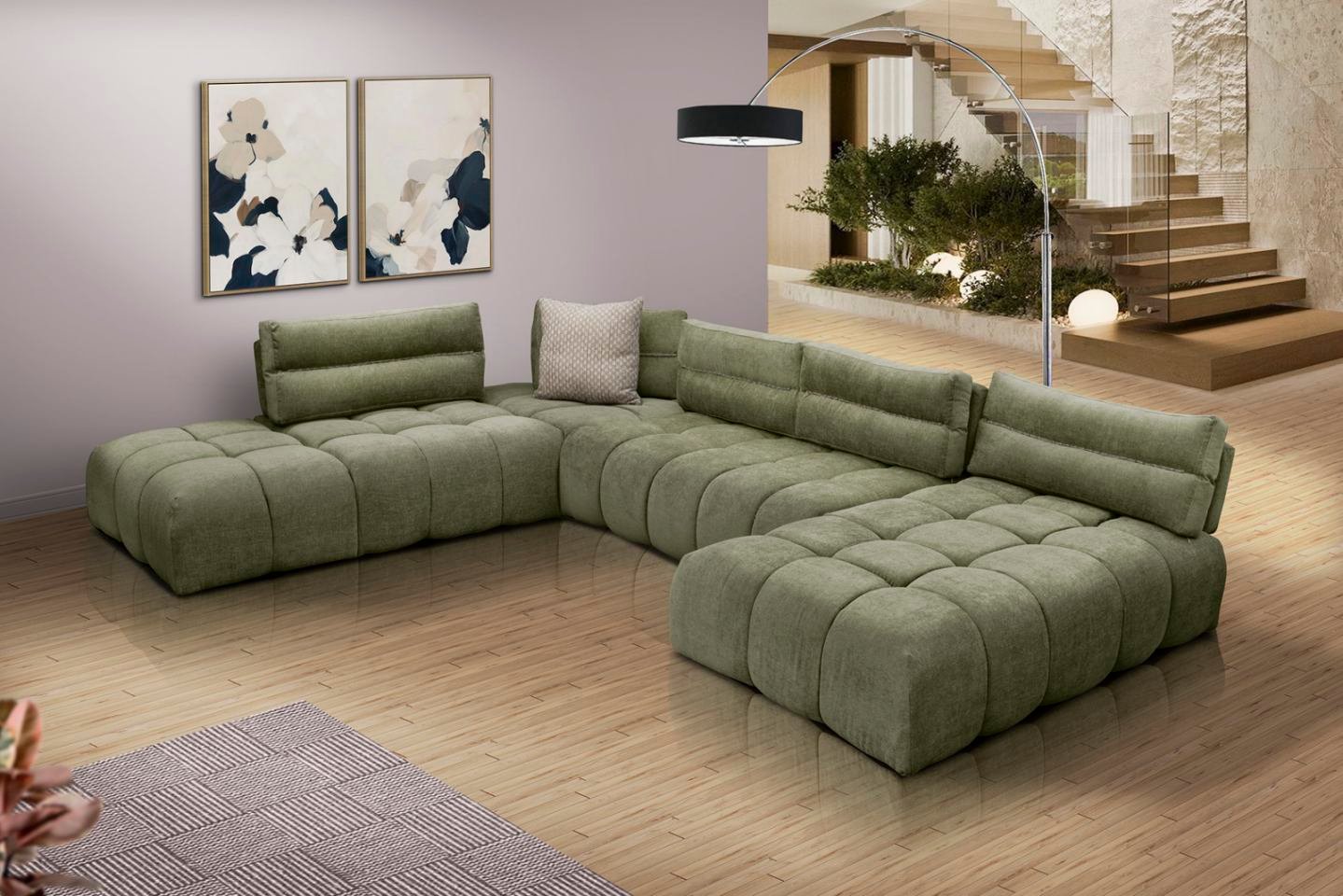 Ο γωνιακός καναπές MADLEN είναι ένας νέος πολυμορφικός καναπές με μηχανισμούς ανοίγματος πλάτης. Είναι ένας καναπές που συνδυάζει την υψηλή αισθητική με την απόλυτη άνεση, χάρη στην απαλή καπιτονέ επένδυση και τις γενναιόδωρες αναλογίες του.